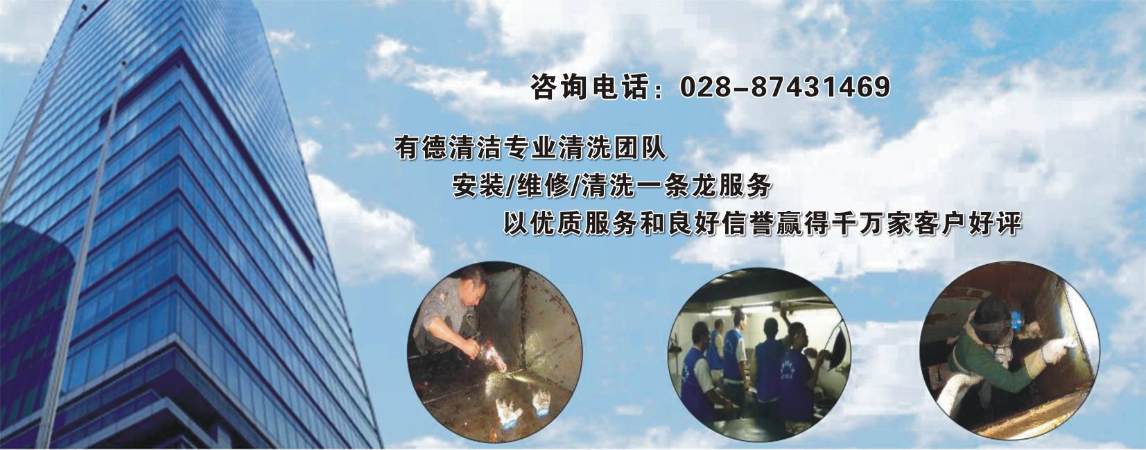 成都有德清潔服務(wù)有限公司------是一家經(jīng)過國家工商部門正規(guī)注冊(cè)的公司,實(shí)繳注冊(cè)資金200萬元人民幣,各項(xiàng)清潔資質(zhì)齊全,擁有合法經(jīng)營(yíng)執(zhí)照的正規(guī)企業(yè),目前公司在職員工246人,其中專業(yè)技術(shù)人員163名,現(xiàn)場(chǎng)技術(shù)管理17,擁有大專以上學(xué)歷的41人,擁有本科及以上學(xué)歷的14人,年富力強(qiáng),我司所有員工都經(jīng)過嚴(yán)格培訓(xùn)及考核,經(jīng)過公司嚴(yán)厲的考核后方能執(zhí)證上崗; 公司擁有多年專業(yè)的管道清洗經(jīng)驗(yàn),引進(jìn)德國Dr.Becher進(jìn)口清洗藥劑,采用dyson專業(yè)進(jìn)口機(jī)器人配合人工進(jìn)行有效清洗,清洗潔凈率高,我司在傳統(tǒng)人工